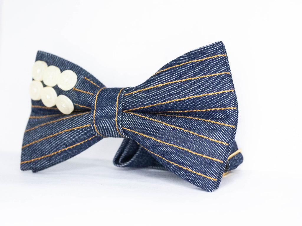 This classic pre-tied blue denim made with buttons bow tie is adjustable and designed to fit perfectly any adult's neck.